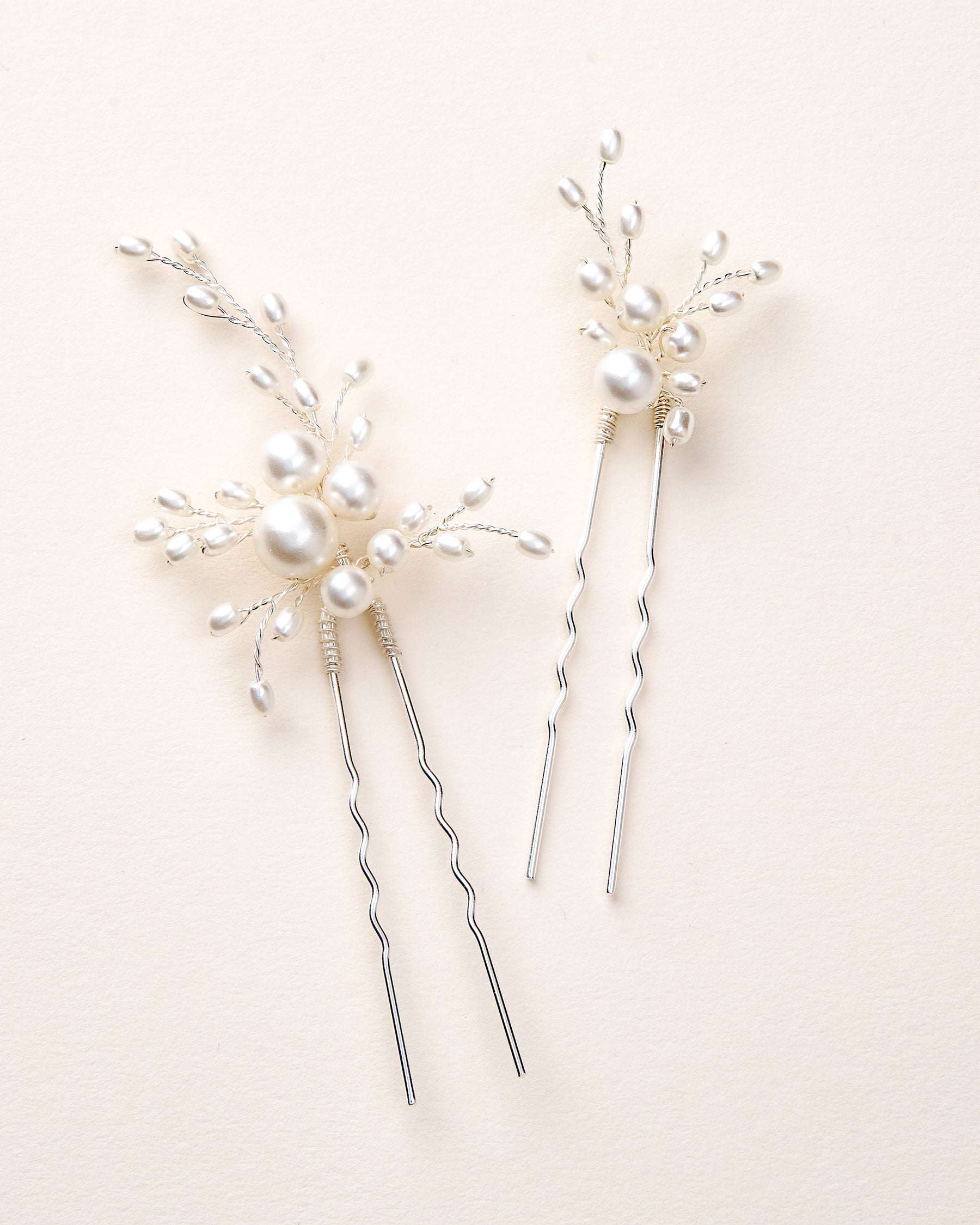 Ellie Pearl Hair Pins add instant polish to any bridal hairstyle. Designed with a mix of larger round pearls and delicate seed pearls, each pin creates a soft, romantic shimmer that feels both timeless and modern.
