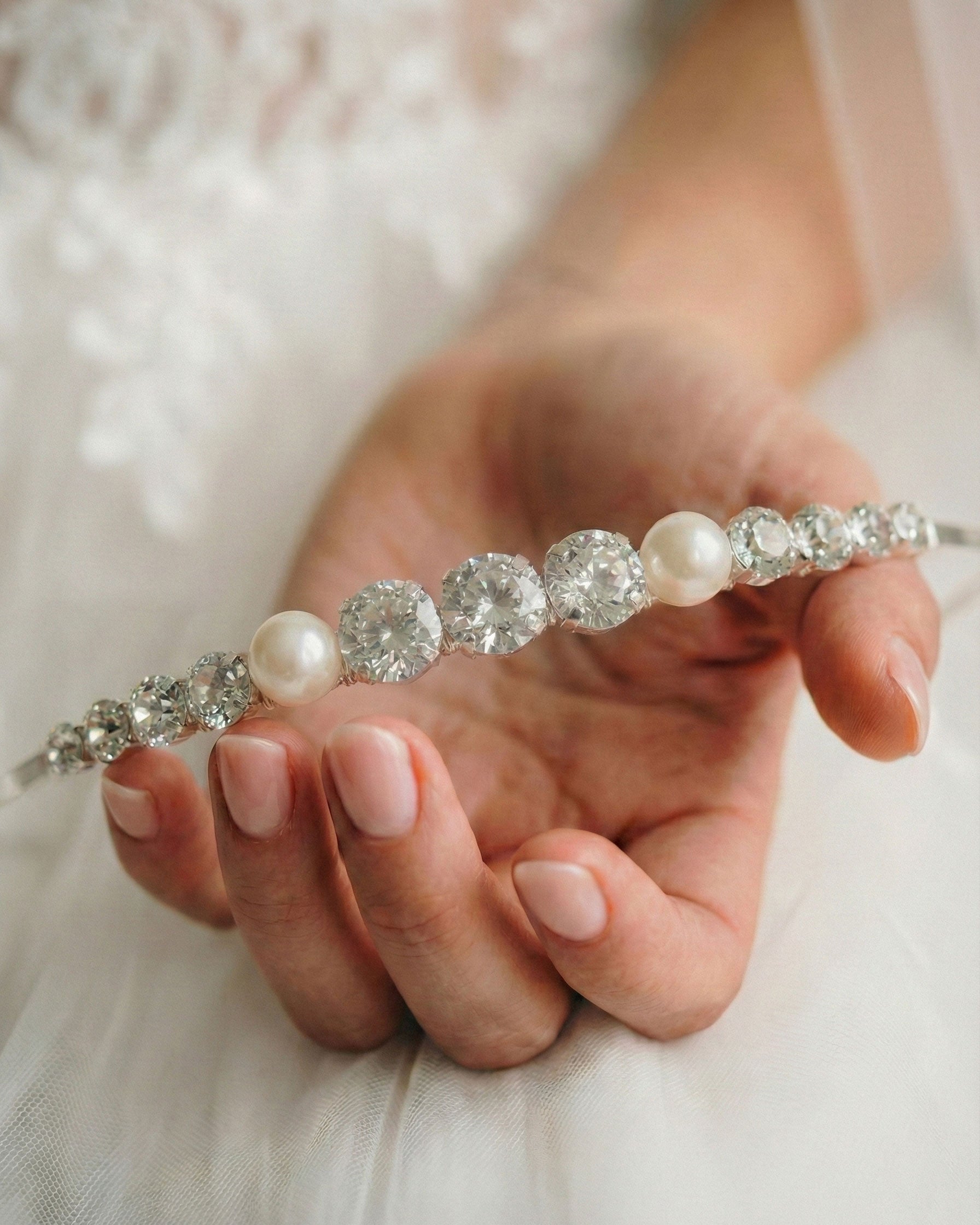 The Dakota Headband delivers minimalist elegance. A single row of brilliant round crystals and smooth pearls creates a sleek and continuous line of shine. This streamlined piece offers a modern feel and rests comfortably in the hair to instantly elevate any hair style.