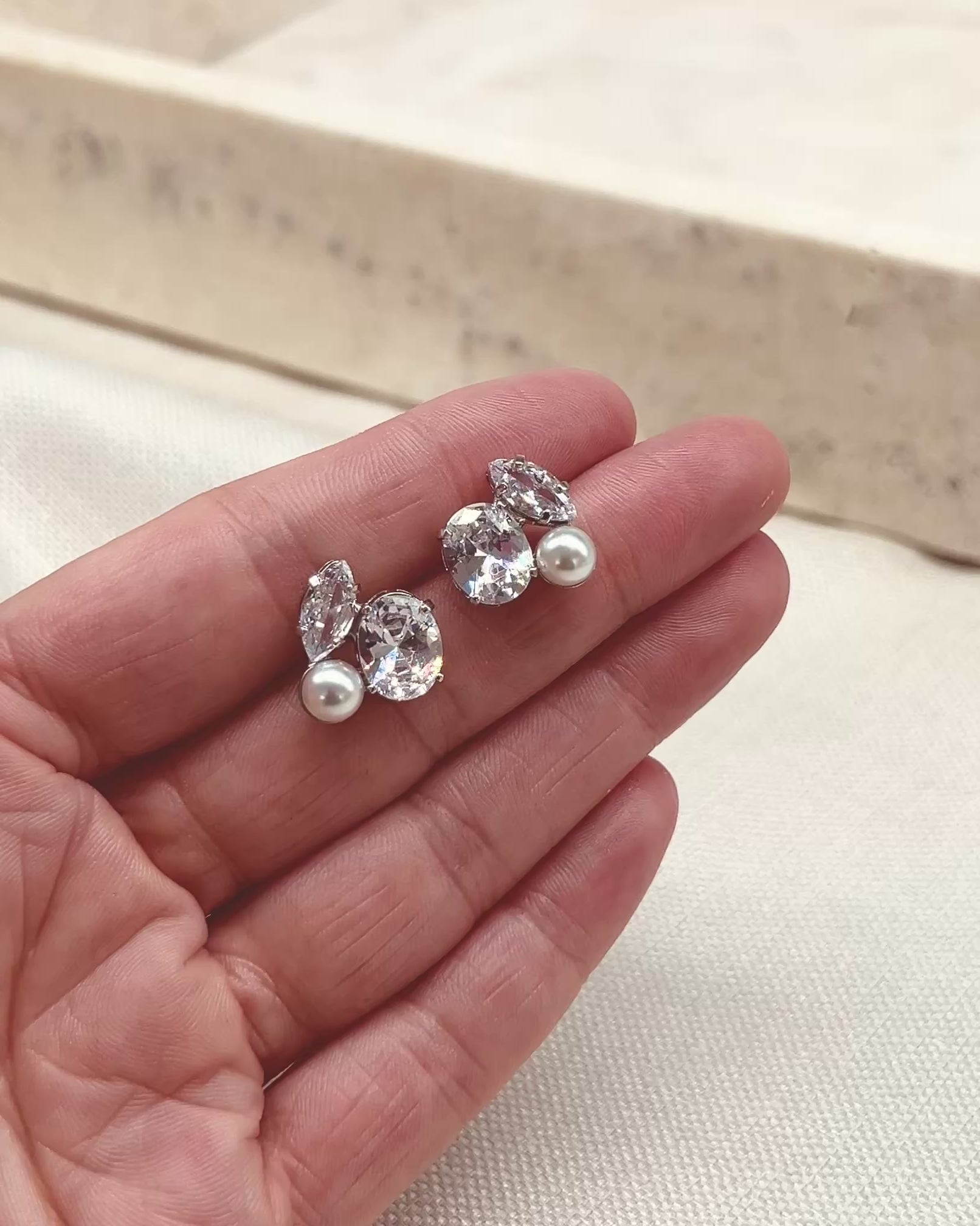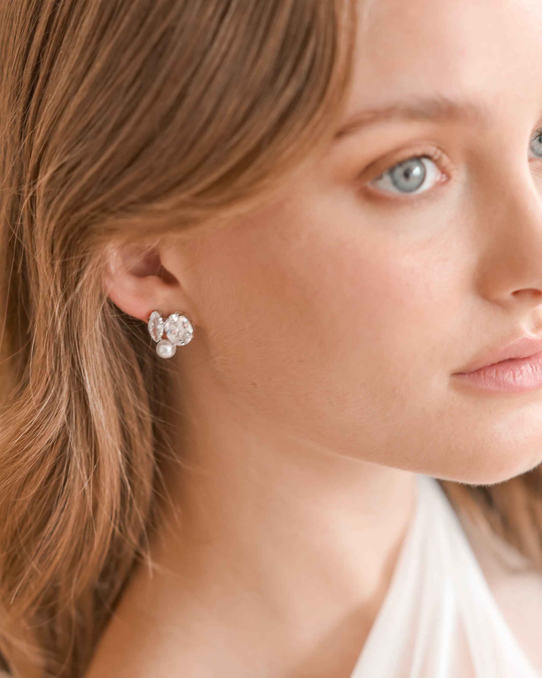 The Celina Earrings feature brilliant simulated diamonds accented with luminous pearls, hand-set in a refined cluster design. Crafted with premium rhodium plating, they balance radiant sparkle with modern sophistication. From our Luxe Edit, where elevated design meets premium materials.