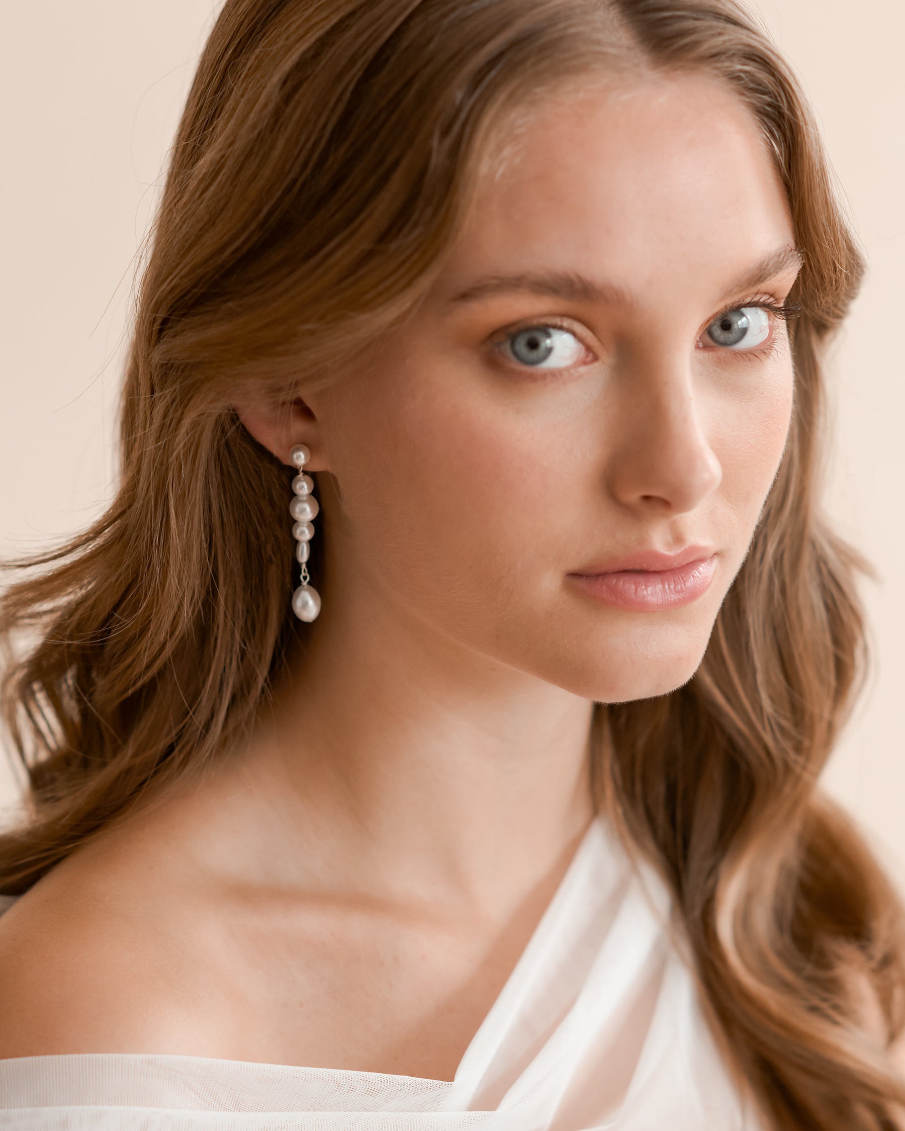Modern and refined, the Stefania Earrings feature a cascading line of soft light ivory pearls in varying sizes and organic shapes. The mix of textures creates gentle movement and a naturally elegant feel. Perfect for brides, bridesmaids, or any occasion that calls for understated sophistication.