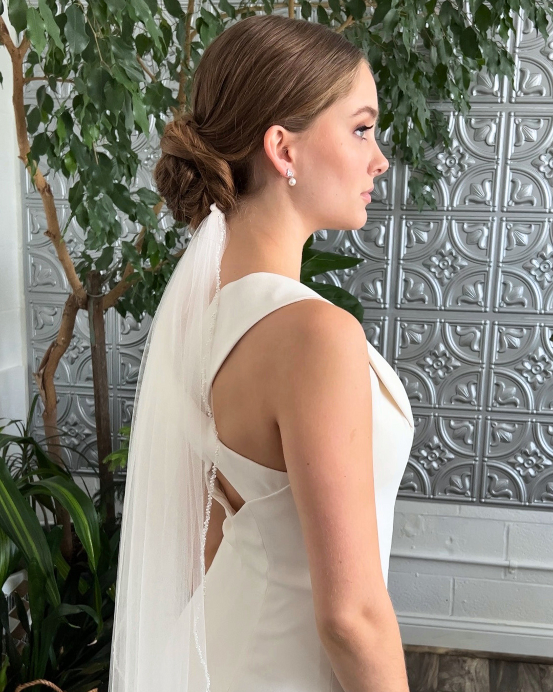 The detailing on the back can help dictate which veil length to choose. Have a belted waist? Consider veils that are longer so it doesn't distract from the beauty of the belt. Have a simple, elegant back? Feel the freedom of flexibility in choosing a veil length that won't interfere regardless of what you choose.